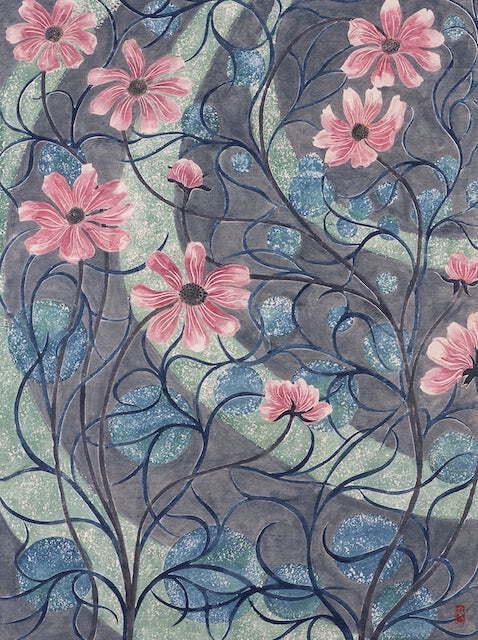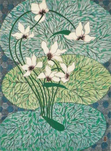宮崎県生まれ。東京都をベースとした女流版画家・染色家。版画界のパイオニア的存在である棟方志功(むなかた しこう)創立の日本板画院に所属し、菊花賞・奨励賞・華厳賞などを受賞。